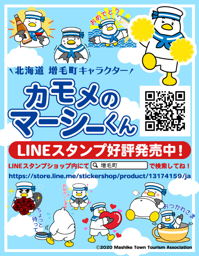 増毛生まれのかもめ。増毛の街が大好き。増毛町の各イベントに登場する。恥ずかしがり屋だがイベントが大好きで、そんなイベントを心待ちにしている。